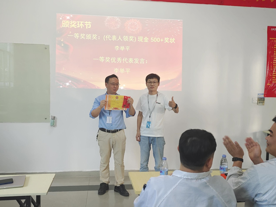 In April, the South China factory received a total of 168 proposals, which were reviewed by the review team of the General Manager's Office and finally awarded 1 first prize, 3 second prizes, and 6 third prizes. The personnel were presented with honorary certificates, bonuses and group photos.